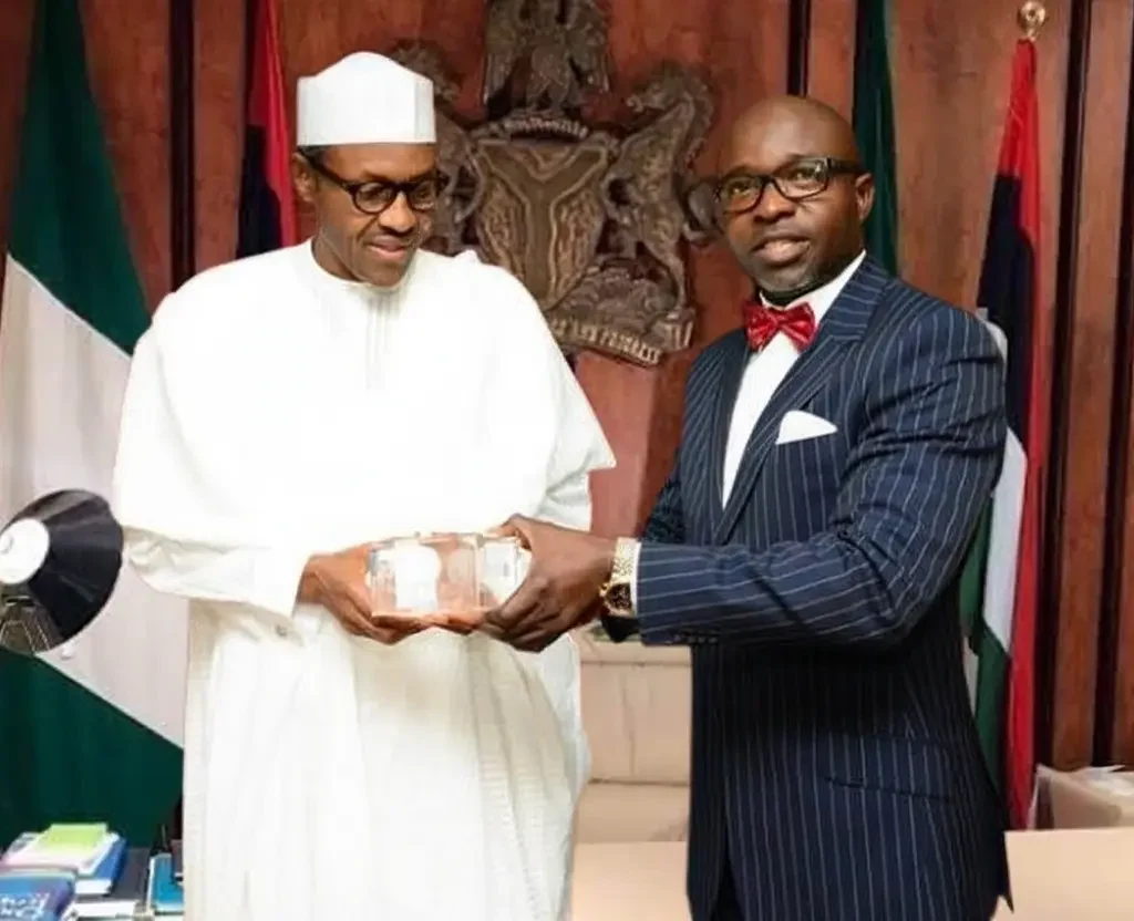 Presenting the light up agenda to his Excellency, Late Mohammadu Buhari, Former President of Nigeria.